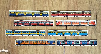 Zestaw 8 magnesów na lodówkę. EZT EN57 i ED72. Są też inne różne epoki, zestawy, pojedyncze wagony i lokomotywy - ... czytaj więcej
