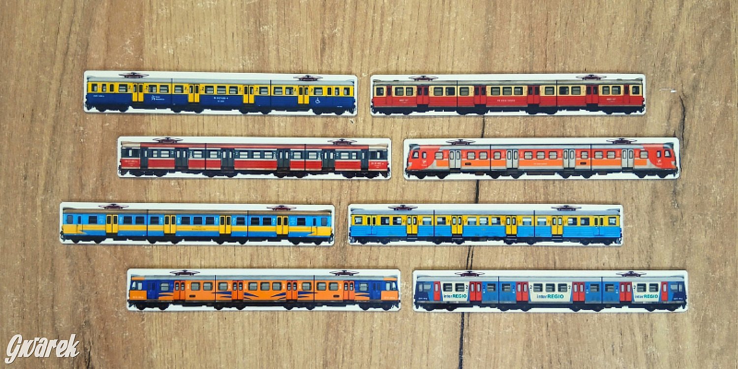 Zestaw 8 magnesów na lodówkę. EZT EN57 i ED72. Są też inne różne epoki, zestawy, pojedyncze wagony i lokomotywy - Sprawdź! Co miesiąc wychodzi nowa seria. Jeden magnes EZT 14 zł a wagon / lokomotywa 7 zł.