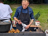 Nowe miejsce, duży rozmach i dobra zabawa – trwają dożynki sołeckie w Wieszowie. Dożynki w Wieszowie organizowane są od lat, jednak w tym roku po raz pierwszy przy pałacu Grotowskich. Do tej pory bawiono się na na boisku, jednak zmiana miejsca była konieczna ze względu na występ gwiazdy sobotniego wieczoru – popularnego zespołu Baciary. Potrzebny był większy teren i na tydzień go wydzierżawiono, żeby przygotować sołeckie dożynki. Rozmawialiśmy z „winowajcą”, który stoi za tymi zmianami. - Rok temu składaliśmy namioty po dożynkach i ktoś zażartował, że może zaprosilibyśmy zespół Baciary. Odpowiedziałem, że spróbujemy, może się uda. I dziś zespół u nas jest – mówi Konrad Lis, radny rady sołeckiej w Wieszowie. Odwiedziliśmy Wieszową ponad godzinę przed koncertem i faktycznie z każdą chwilą ludzi przybywało. Wybór gwiazdy okazał się strzałem w dziesiątkę. W oczekiwaniu na występ nudy nie było. Kolejka ustawiała się do kupowania losów loterii fantowej, w której można było wygrać na przykład ziemniaki. Serwowano pyszne ciasta domowej roboty, do kupienia była także lemoniada w różnych smakach. Do tego doszło jeszcze wesołe miasteczko czy możliwość zobaczenia okolicy ze strażackiej zwyżki. Atrakcji było zresztą więcej. Sołeckich dożynek dzień pierwszy zakończą karaoke i zabawa taneczna. Co będzie się działo w niedzielę, przeczytacie tutaj: Dożynki przy pałacu. Baciary, korowód i...