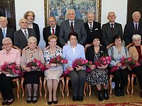 W restauracji Marco w Radzionkowie odbyła się dziś uroczystość złotych godów. Złote gody świętowali: Dorota i Antoni Błaszczykowie, Barbara i Henryk Boncolowie, Mirosława i Robert Flakowie, Halina i Henryk Kruczkowscy, Weronika i Tadeusz Michalikowie, Halina i Roman Ogrodnikowie oraz Brygida i Jerzy Toborowie. Jubilaci otrzymali medale z różą, kwiaty i upominki. 60 lat razem są Irena i Paweł Cieślowie oraz Henryka i Hubert Michalikowie, a 65 lat – Renata i Ryszard Molowie. Żelazne gody świętują też: Bronisława i Józef Dziubkowie oraz Anna i Józef Krzyżowie. Życzenia małżonkom składał burmistrz Gabriel Tobor. My też życzymy im wszystkiego co najlepsze. Czytaj też: Powiat tarnogórski. Po zmianie nagroda warta 10 tys. zł