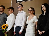 – Dzwonię tym dzwonkiem tylko dwa razy w roku. 1 września klasom pierwszym i ostatniego dnia szkoły absolwentom. To jest wasz ostatni dzwonek w tej szkole – powiedział Krzysztof Siwiec, dyrektor Szkoły Podstawowej nr 9 im. Mikołaja Kopernika w Tarnowskich Górach. Po chwili zabrzmiał stary, ręczny dzwonek szkolny, który można oglądać w historycznych filmach. Ósmoklasiści przekazali sztandar szkoły swoim młodszym kolegom. Odśpiewano hymn państwowy. Były podziękowania dla absolwentów, którzy otrzymali świadectwa z wyróżnieniem i listy gratulacyjne dla ich rodziców. Wręczono stypendia naukowe i sportowe. Przyznawany co roku tytuł dla najlepszego ucznia Primus inter pares otrzymał Oliwier Pilot. – Osiem lat temu miałem okazję osobiście was witać i przekazywać w ręce wychowawców. Losy toczyły się, osiem lat jak z bicza strzelił. Jedno się nie zmieniło: twarze waszych rodziców ciągle zatroskane. Przecież ich dzieci mają już po 15 lat, a oni cięgle się troszczą. Szanowni państwo gratuluję waszych pociech. Kończą dzisiaj 8 klasę i są absolwentami naszej szkoły. Wielkie ukłony w państwa stronę i życzę dalej byście się nie zmieniali, by ta troska o wasze pociechy zawsze szła w dobrą stronę – powiedział dyrektor Siwiec. Potem młodzież zatańczyła poloneza. Na koniec uczniowie przygotowali pożegnalny występ artystyczny. Czytaj także: Tarnowskie Góry. Rozdanie świadectw w Trójce
