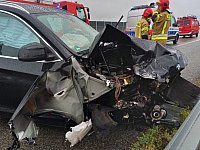 Dwóch funkcjonariuszy piekarskiej drogówki trafiło do szpitala po tym, jak radiowóz, którym jechali, zderzył się z samochodem osobowym.