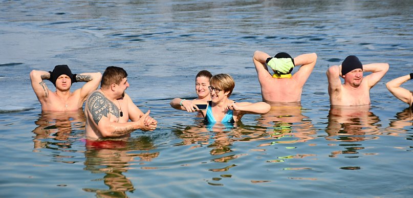 Lód bywa zdradliwy, woda pod lodem pracuje, jego tafla jest coraz bardziej łamliwa. Niestety na zamarznięty akwen wchodzą rodzice z dziećmi, a gdy się im zwraca uwagę, to można jeszcze otrzymać ostrą ripostę. Wczoraj była akcja służb nad zalewem, właśnie związana z podejrzeniem, że ktoś wpadł pod lód. Na całe szczęście nikomu nic się nie stało. Nie warto ryzykować, a jak ktoś chce sprawdzić jak zimna jest woda zapraszam do morsowania, które w naszym miejscu jest bezpieczne – podsumowuje znany wszystkim Adik.